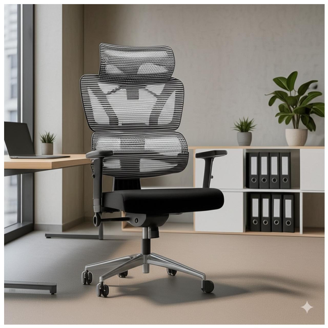 A Cadeira Ergonômica Executiva foi desenvolvida para oferecer alto desempenho em conforto e postura, ideal para jornadas prolongadas de trabalho em escritórios, home office ou ambientes corporativos exigentes. Seu design moderno, estrutura robusta e recursos ergonômicos garantem suporte completo à coluna — da lombar à cervical — promovendo bem-estar ao longo do dia.