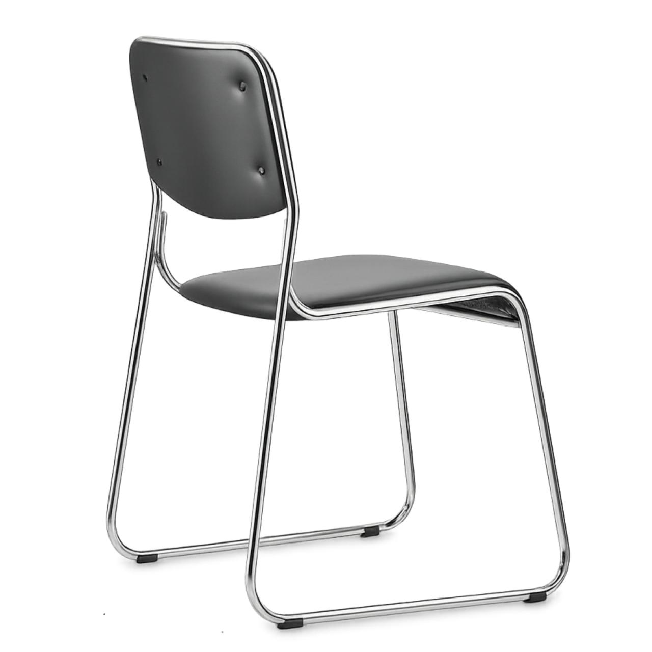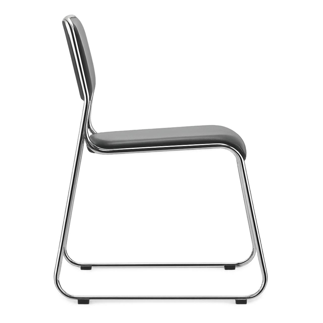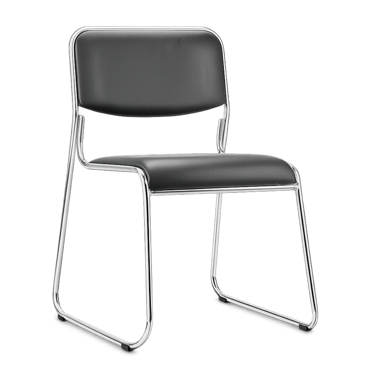 Cadeira de design clean, empilhável, ideal para ambientes coletivos como escritórios, salas de reunião, auditórios e recepções. Combina estrutura metálica resistente com conforto no assento e encosto estofados.