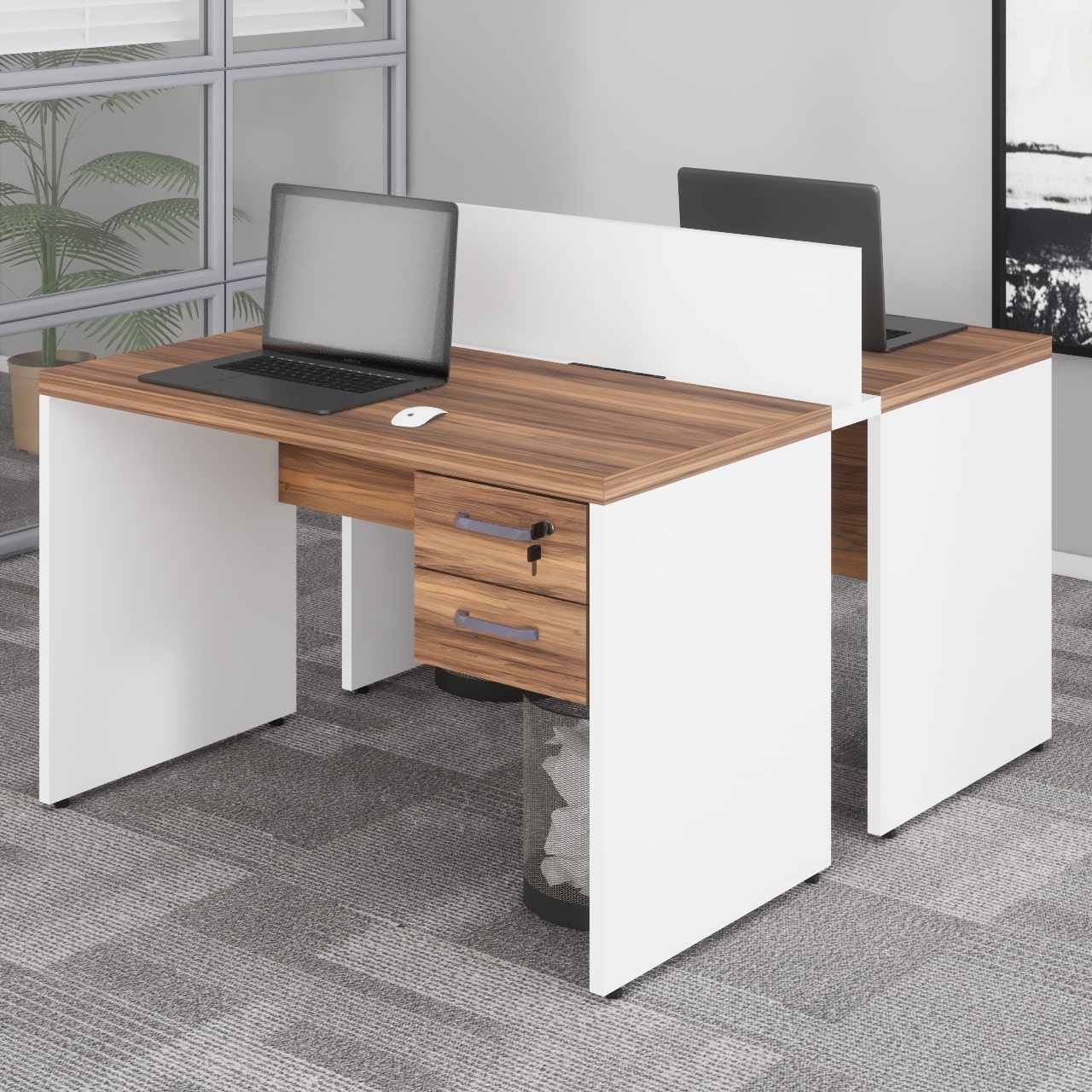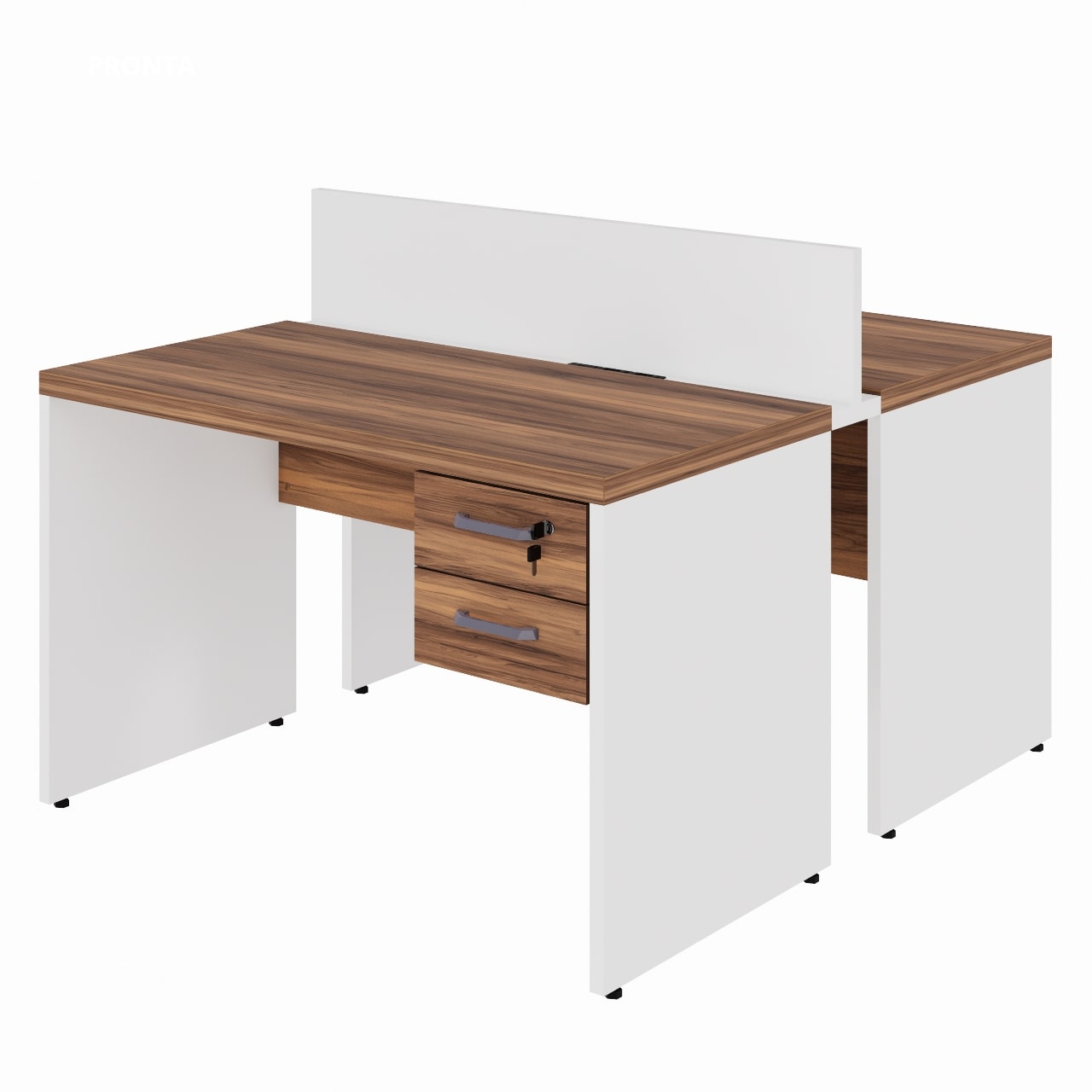 Estação de Trabalho Dupla 1,20×1,35m 02 Lugares c/ Gavetas c/ ponto de tomada PÉ PAINEL – Nogal Sevilha/Branco – 34427
