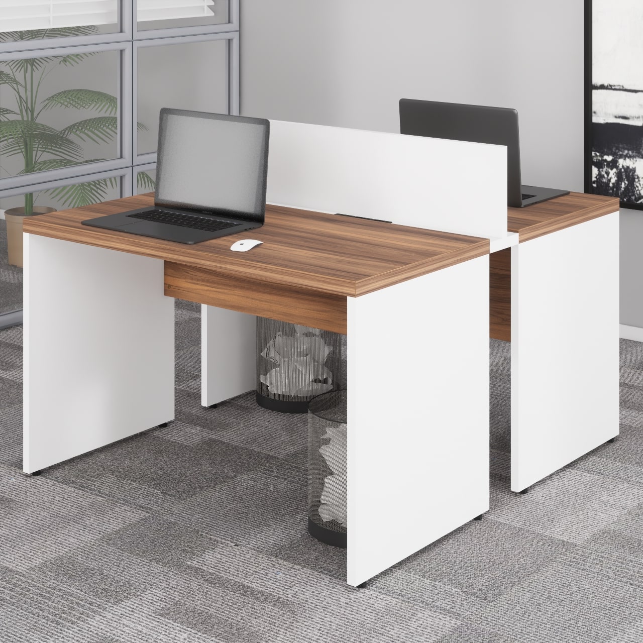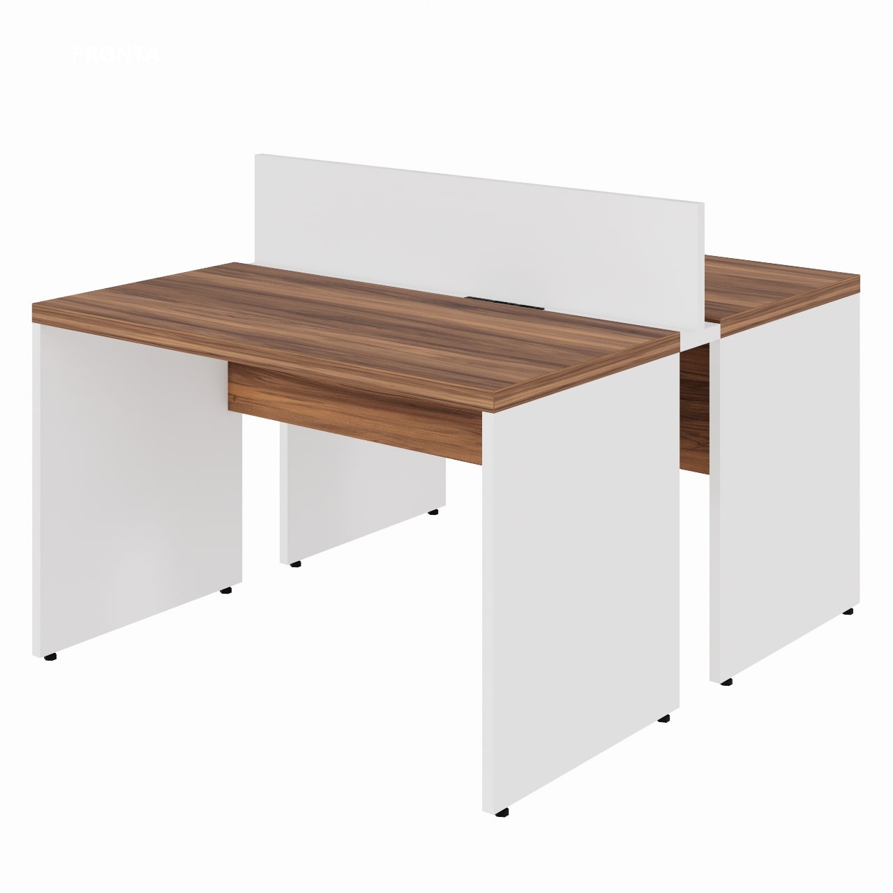 Estação de Trabalho Dupla 1,20×1,35m 02 Lugares sem Gavetas c/ ponto de tomada PÉ PAINEL – Nogal Sevilha/Branco – 34428