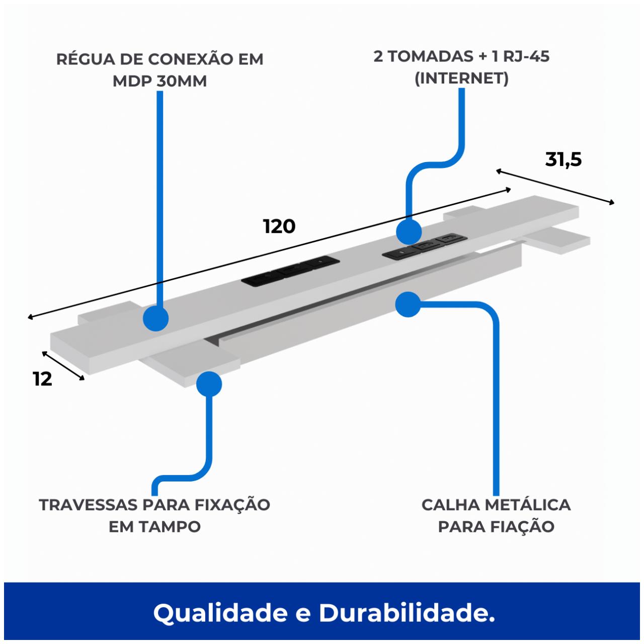 • Travessas: Estrutura reforçada com travessas metálicas ocultas sob o tampo